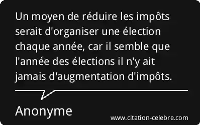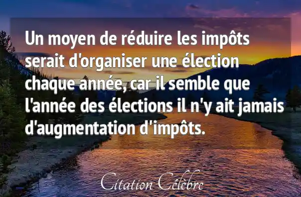 Un moyen de réduire les impôts serait d'organiser une élection chaque année, car il semble que l'année des élections il n'y ait jamais d'augmentation d'impôts.