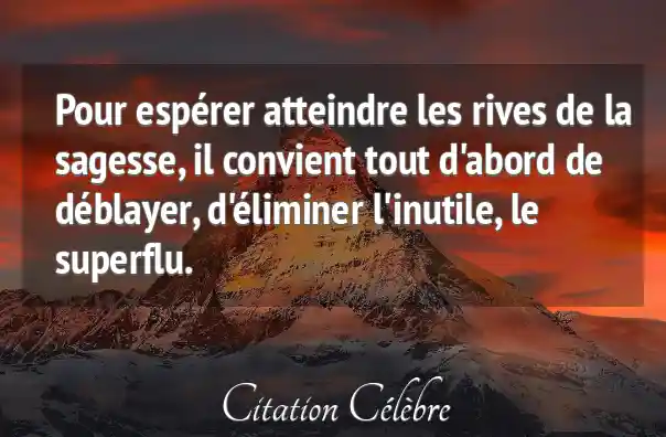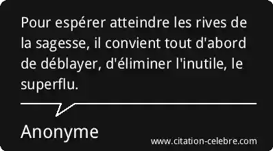 Pour espérer atteindre les rives de la sagesse, il convient tout d'abord de déblayer, d'éliminer l'inutile, le superflu.