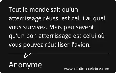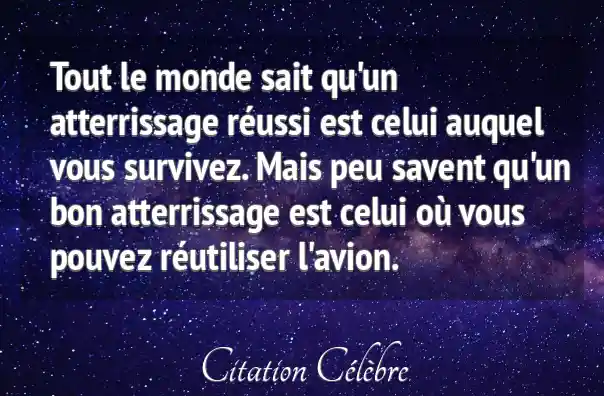 Tout le monde sait qu'un atterrissage réussi est celui auquel vous survivez. Mais peu savent qu'un bon atterrissage est celui où vous pouvez réutiliser l'avion.