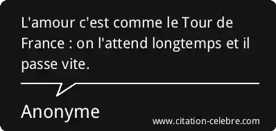 L'amour c'est comme le Tour de France : on l'attend longtemps et il passe vite.
