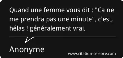 Quand une femme vous dit : "Ca ne me prendra pas une minute", c'est, hélas ! généralement vrai.