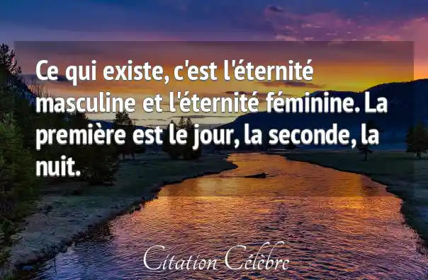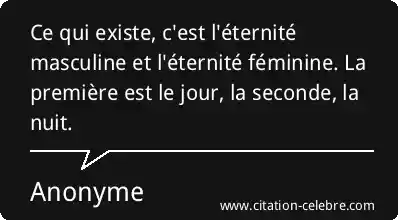 Ce qui existe, c'est l'éternité masculine et l'éternité féminine. La première est le jour, la seconde, la nuit.