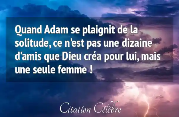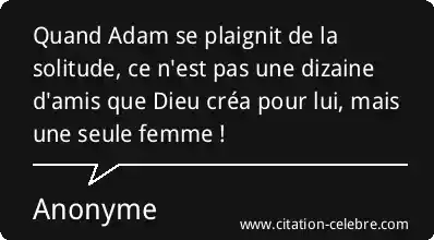 Quand Adam se plaignit de la solitude, ce n'est pas une dizaine d'amis que Dieu créa pour lui, mais une seule femme !