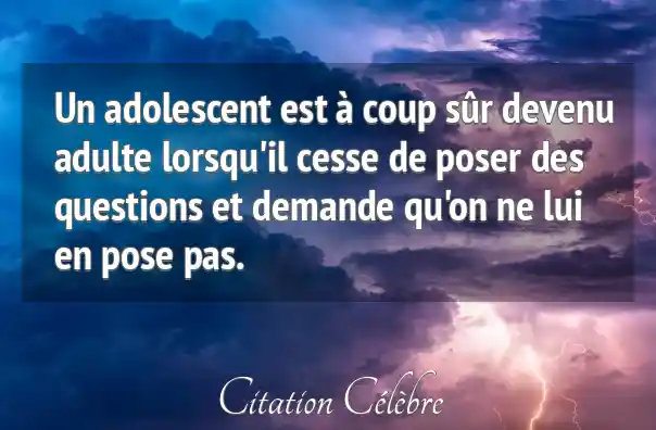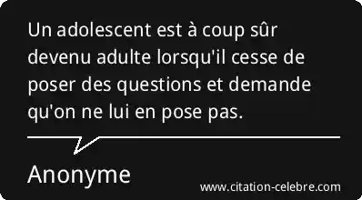 Un adolescent est à coup sûr devenu adulte lorsqu'il cesse de poser des questions et demande qu'on ne lui en pose pas.