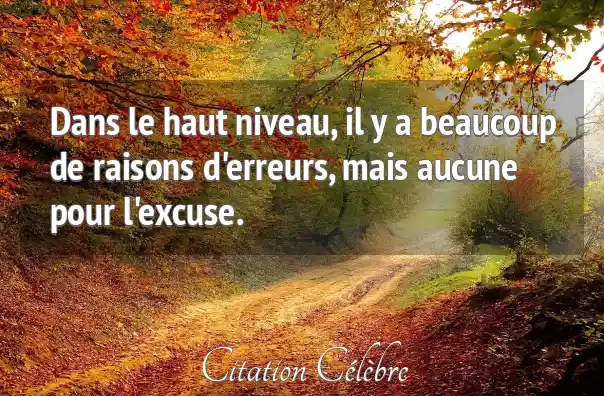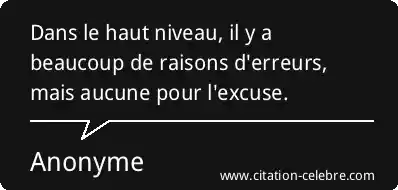Dans le haut niveau, il y a beaucoup de raisons d'erreurs, mais aucune pour l'excuse.