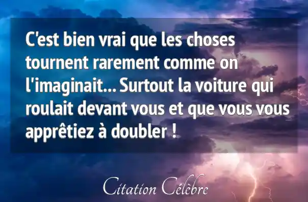 C'est bien vrai que les choses tournent rarement comme on l'imaginait... Surtout la voiture qui roulait devant vous et que vous vous apprêtiez à doubler !