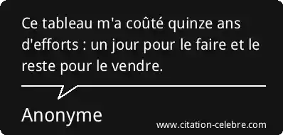 Ce tableau m'a coûté quinze ans d'efforts : un jour pour le faire et le reste pour le vendre.