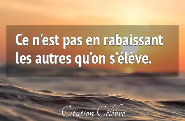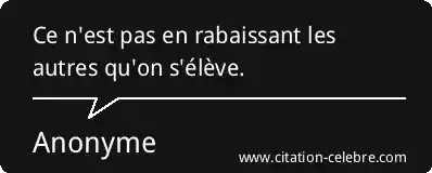 Ce n'est pas en rabaissant les autres qu'on s'élève.