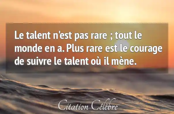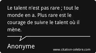 Le talent n'est pas rare ; tout le monde en a. Plus rare est le courage de suivre le talent où il mène.