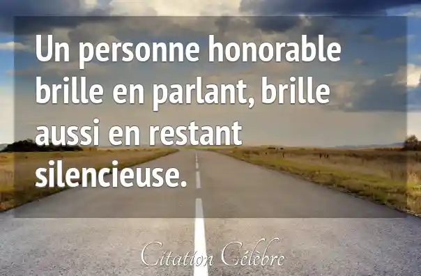 Un personne honorable brille en parlant, brille aussi en restant silencieuse.