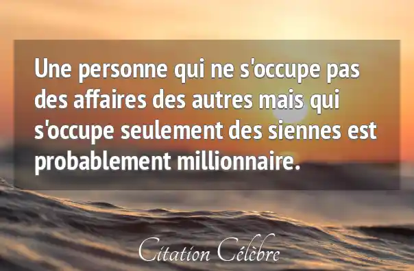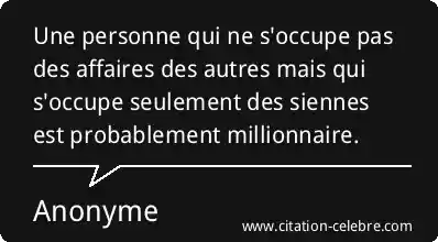 Une personne qui ne s'occupe pas des affaires des autres mais qui s'occupe seulement des siennes est probablement millionnaire.