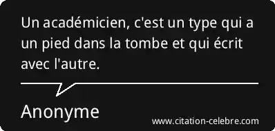 Un académicien, c'est un type qui a un pied dans la tombe et qui écrit avec l'autre.