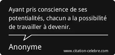 Ayant pris conscience de ses potentialités, chacun a la possibilité de travailler à devenir.
