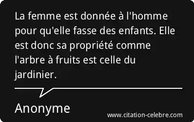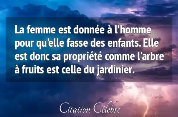 La femme est donnée à l'homme pour qu'elle fasse des enfants. Elle est donc sa propriété comme l'arbre à fruits est celle du jardinier.