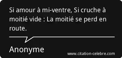 Si amour à mi-ventre, Si cruche à moitié vide : La moitié se perd en route.