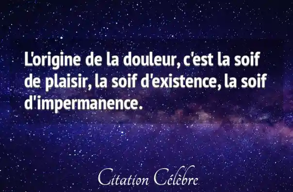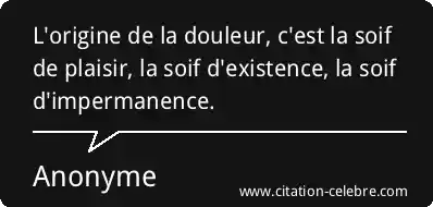 L'origine de la douleur, c'est la soif de plaisir, la soif d'existence, la soif d'impermanence.