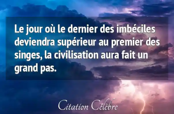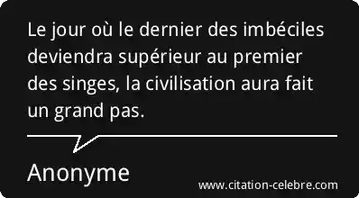 Le jour où le dernier des imbéciles deviendra supérieur au premier des singes, la civilisation aura fait un grand pas.
