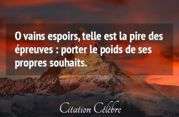 O vains espoirs, telle est la pire des épreuves : porter le poids de ses propres souhaits.