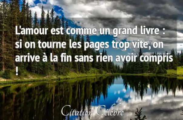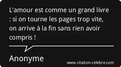 L'amour est comme un grand livre : si on tourne les pages trop vite, on arrive à la fin sans rien avoir compris !
