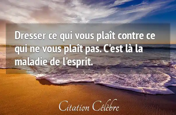 Dresser ce qui vous plaît contre ce qui ne vous plaît pas. C'est là la maladie de l'esprit.