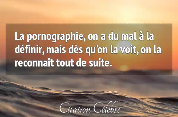 La pornographie, on a du mal à la définir, mais dès qu'on la voit, on la reconnaît tout de suite.