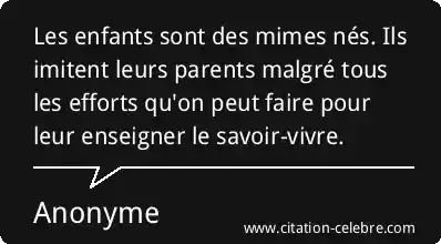 Citation Anonyme vivre : Les enfants sont des mimes nés. Ils imitent leurs parents...