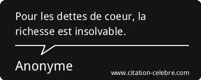 Citation Anonyme coeur : Pour les dettes de coeur, la richesse est insolvable....