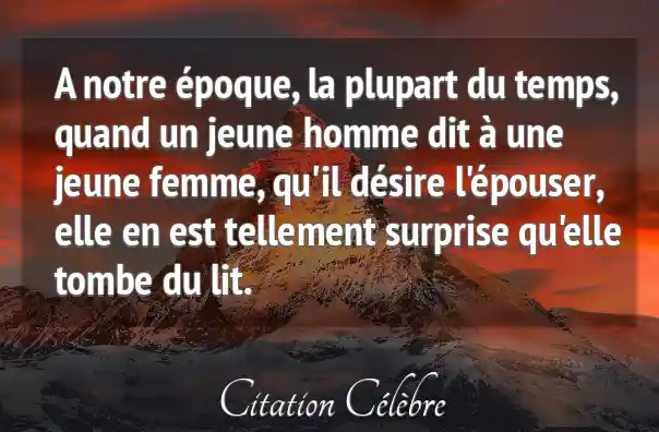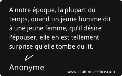 A notre époque, la plupart du temps, quand un jeune homme dit à une jeune femme, qu'il désire l'épouser, elle en est tellement surprise qu'elle tombe du lit.