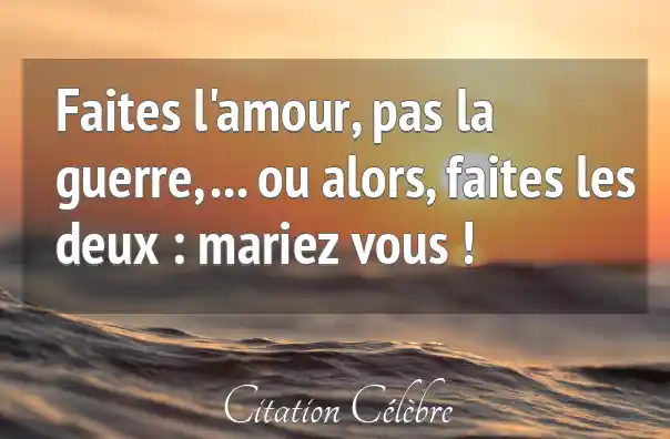 Faites l'amour, pas la guerre, ... ou alors, faites les deux : mariez vous !