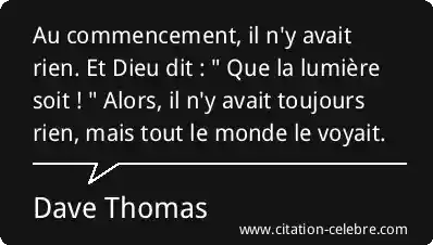 Au commencement, il n'y avait rien. Et Dieu dit : " Que la lumière soit ! " Alors, il n'y avait toujours rien, mais tout le monde le voyait.