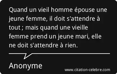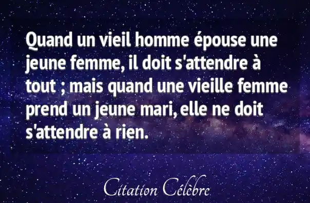 Quand un vieil homme épouse une jeune femme, il doit s'attendre à tout ; mais quand une vieille femme prend un jeune mari, elle ne doit s'attendre à rien.