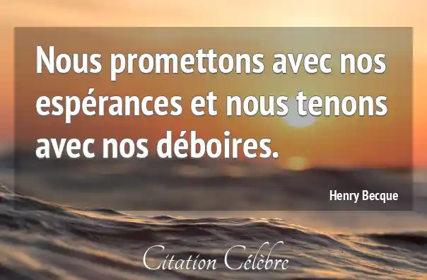 Nous promettons avec nos espérances et nous tenons avec nos déboires.