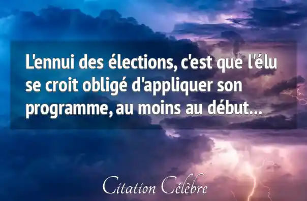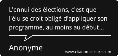 L'ennui des élections, c'est que l'élu se croit obligé d'appliquer son programme, au moins au début...