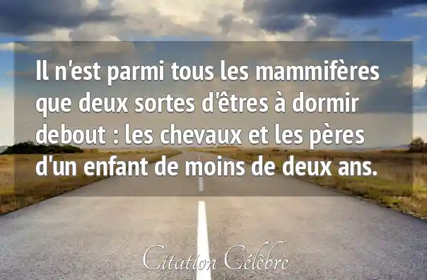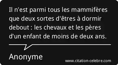 Il n'est parmi tous les mammifères que deux sortes d'êtres à dormir debout : les chevaux et les pères d'un enfant de moins de deux ans.