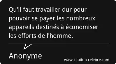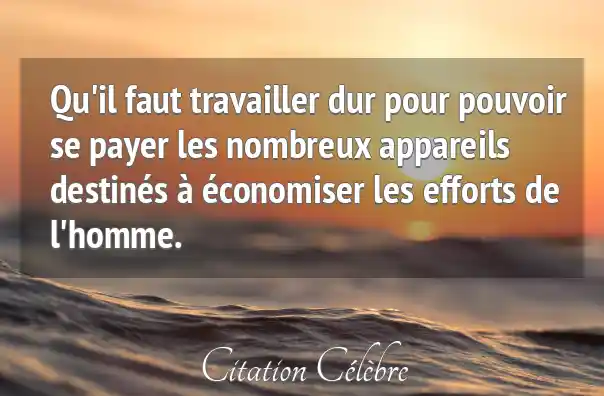 Qu'il faut travailler dur pour pouvoir se payer les nombreux appareils destinés à économiser les efforts de l'homme.
