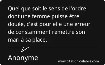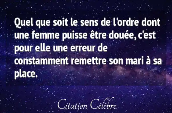Quel que soit le sens de l'ordre dont une femme puisse être douée, c'est pour elle une erreur de constamment remettre son mari à sa place.