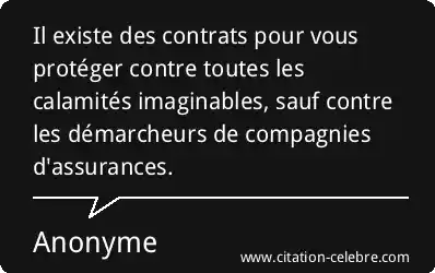 Il existe des contrats pour vous protéger contre toutes les calamités imaginables, sauf contre les démarcheurs de compagnies d'assurances.