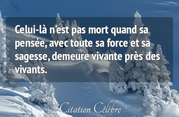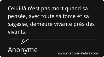 Celui-là n'est pas mort quand sa pensée, avec toute sa force et sa sagesse, demeure vivante près des vivants.