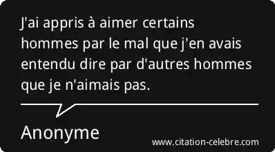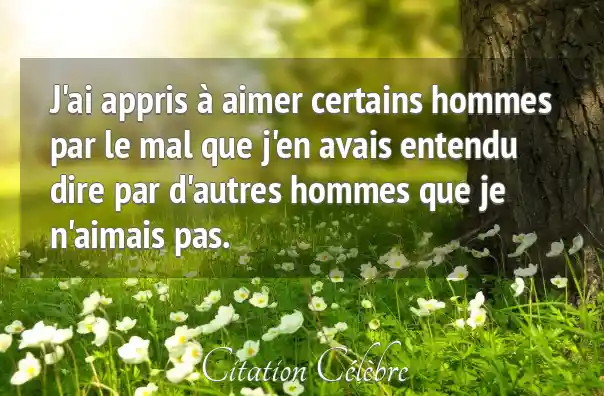 J'ai appris à aimer certains hommes par le mal que j'en avais entendu dire par d'autres hommes que je n'aimais pas.