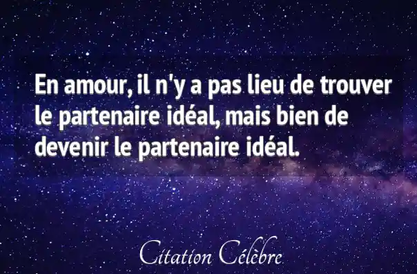 En amour, il n'y a pas lieu de trouver le partenaire idéal, mais bien de devenir le partenaire idéal.