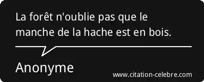 Citation Anonyme foret : La forêt n'oublie pas que le manche de la hache...