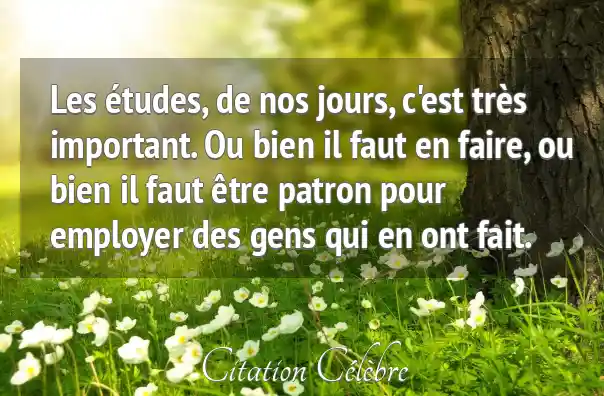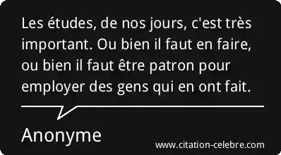 Les études, de nos jours, c'est très important. Ou bien il faut en faire, ou bien il faut être patron pour employer des gens qui en ont fait.