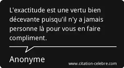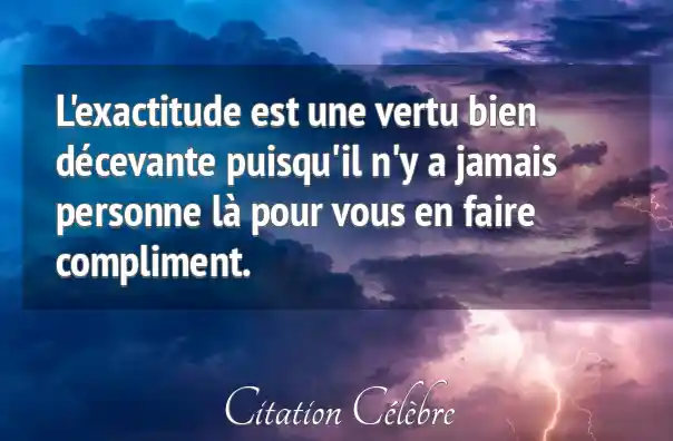 L'exactitude est une vertu bien décevante puisqu'il n'y a jamais personne là pour vous en faire compliment.