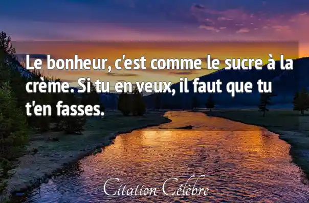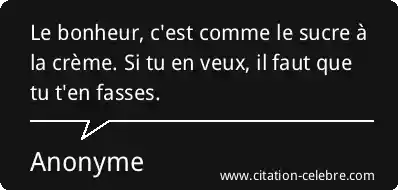 Le bonheur, c'est comme le sucre à la crème. Si tu en veux, il faut que tu t'en fasses.