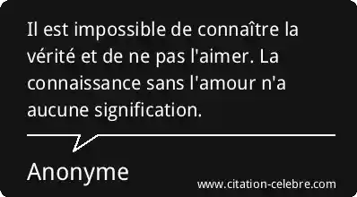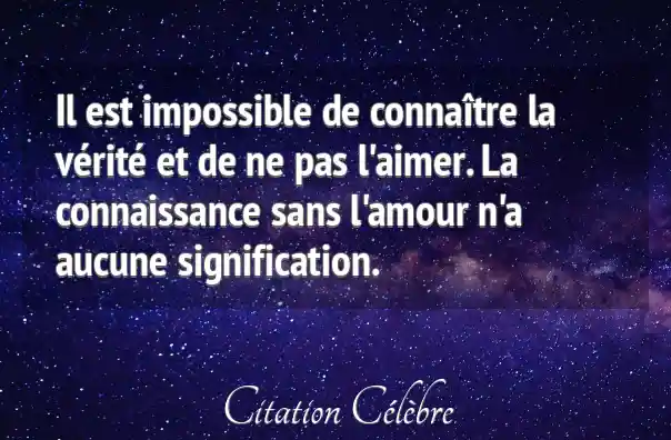 Il est impossible de connaître la vérité et de ne pas l'aimer. La connaissance sans l'amour n'a aucune signification.