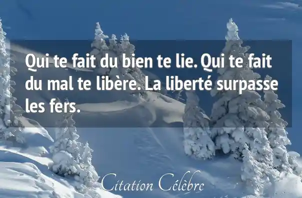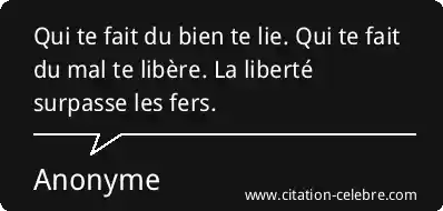 Qui te fait du bien te lie. Qui te fait du mal te libère. La liberté surpasse les fers.
