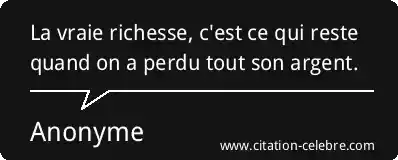 La vraie richesse, c'est ce qui reste quand on a perdu tout son argent.