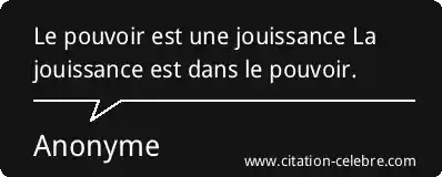Le pouvoir est une jouissance La jouissance est dans le pouvoir.