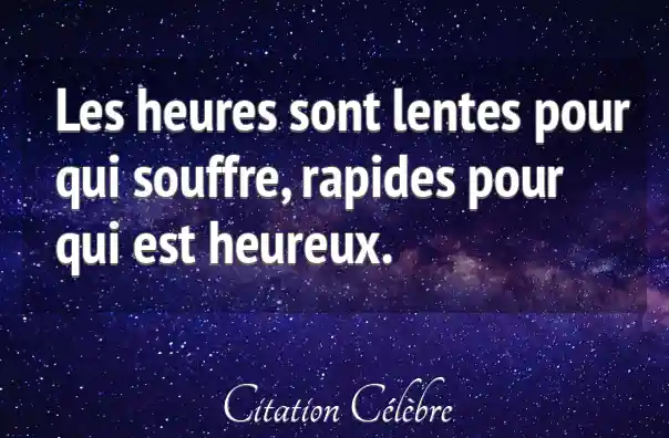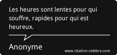 Les heures sont lentes pour qui souffre, rapides pour qui est heureux.