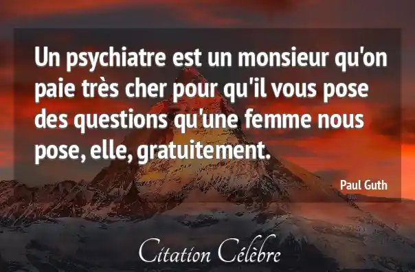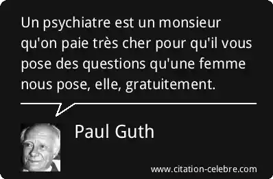Un psychiatre est un monsieur qu'on paie très cher pour qu'il vous pose des questions qu'une femme nous pose, elle, gratuitement.